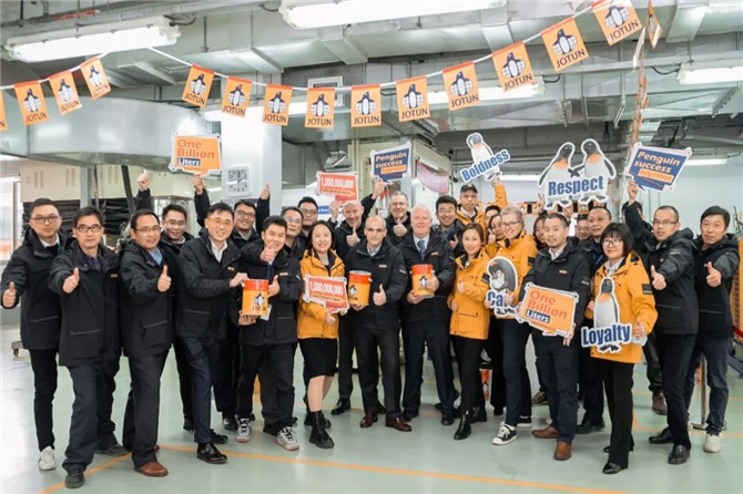 “ 10、9、8......1?。? ” ,緊張忙碌的車間今天熱鬧非凡,隨著一陣歡呼,第10億升涂料裝罐了!這是所有佐敦人的驕傲,是一升一升,一桶一桶,一天一天,一年一年的努力!不積跬步, 無以至千里。不積小流,無以成江海。10億升凝聚了太多的心血,這一刻值得企鵝們大聲說:Pennguin Success together!