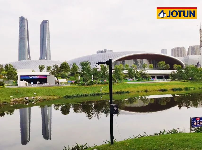 打破人們對于現(xiàn)代建筑冷冰冰的傳統(tǒng)理念,用獨特的月牙懸挑結(jié)構(gòu)創(chuàng)造張力之美,以萬鈞鋼之重造就灞河之濱輕盈的月光之美。佐敦以豐富的鋼結(jié)構(gòu)防腐涂刷業(yè)績和專業(yè)的防腐防火長效保護提案,被選定為9萬噸鋼結(jié)構(gòu)的防腐防火涂料供應(yīng)商,特選用佐敦膨脹型防火涂料與氟碳面漆組合,為2萬多噸的外露屋蓋鋼桁架保駕護航,實現(xiàn)“懸浮彎月”的建筑設(shè)計效果。